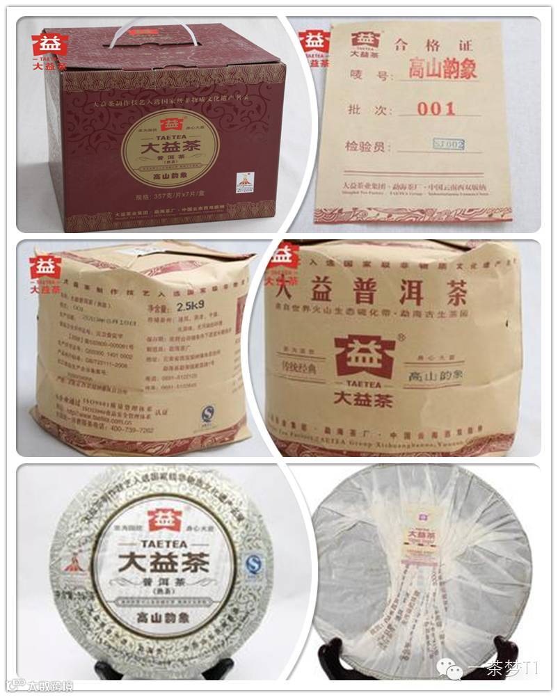 3、2010年001批357g高山韵象熟饼,单件:7饼*4提,10kg;纸袋成提、配中提盒、纸箱成件。
