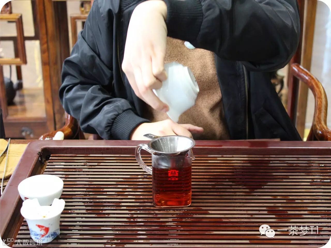 汤色红浓透亮,滋味浓醇顺滑,陈香初显;