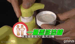 挤满1瓶盖的洗洁精,再将瓶盖中的洗洁精倒入空杯子中。