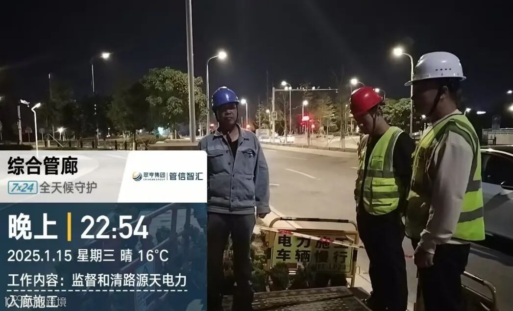 1月14日至16日的晚上,管信智汇公司组织人员加班加点,全力以赴配合深中高新产业园的电力管线入廊工作,确保了电力管线入廊工作的顺利进行,为产业园区的电力供应稳定和安全提供了有力保障。
