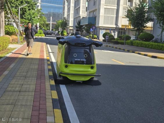 在场景测试中,无人清扫机器人执行“安全至上,保障行人车辆”的安全指令,清扫中的自动贴边,误差小至厘米级,告别边角遗漏问题。其自动避障响应更可达毫秒级,能精准区分障碍物属性,刹停距离不超10厘米,有效防止“鬼探头”等意外状况发生。