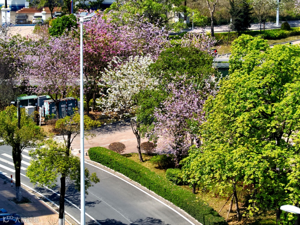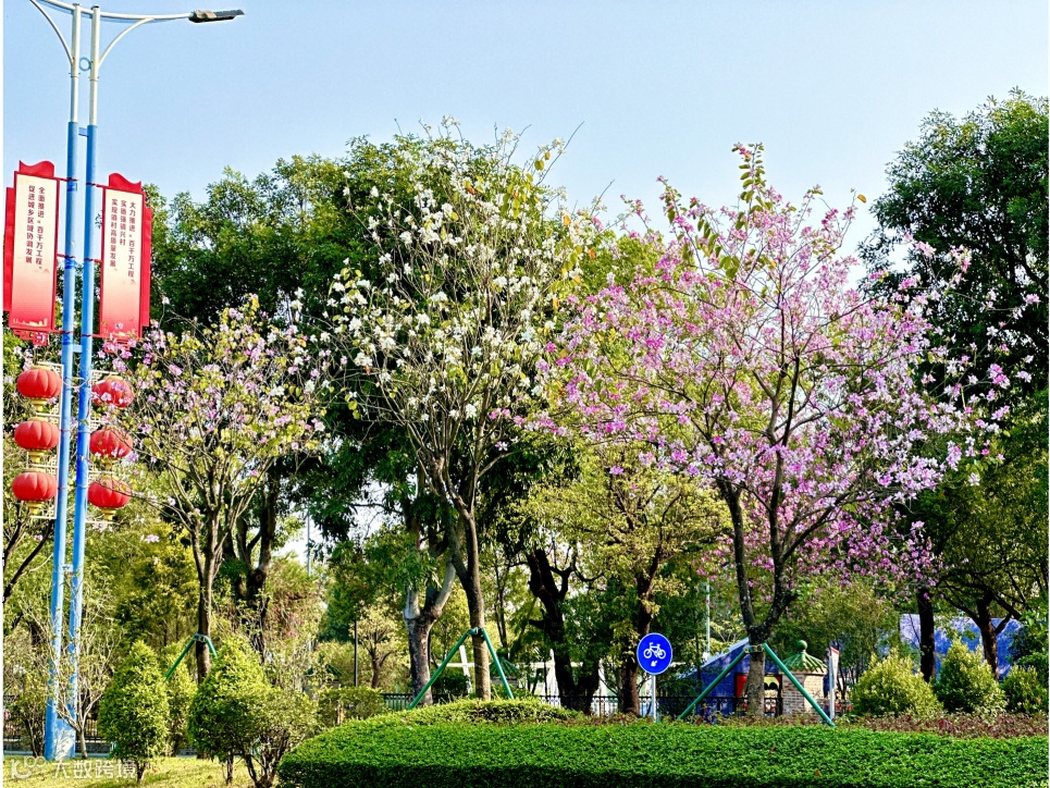 五桂路花带春意盎然