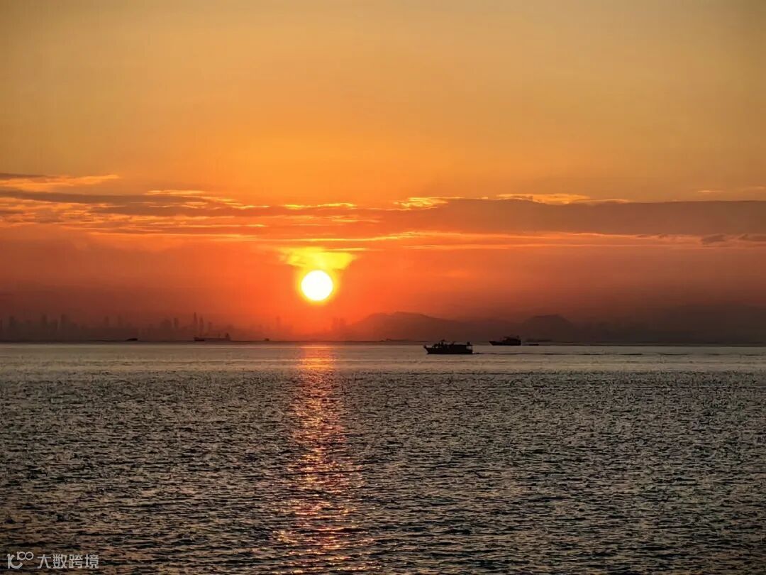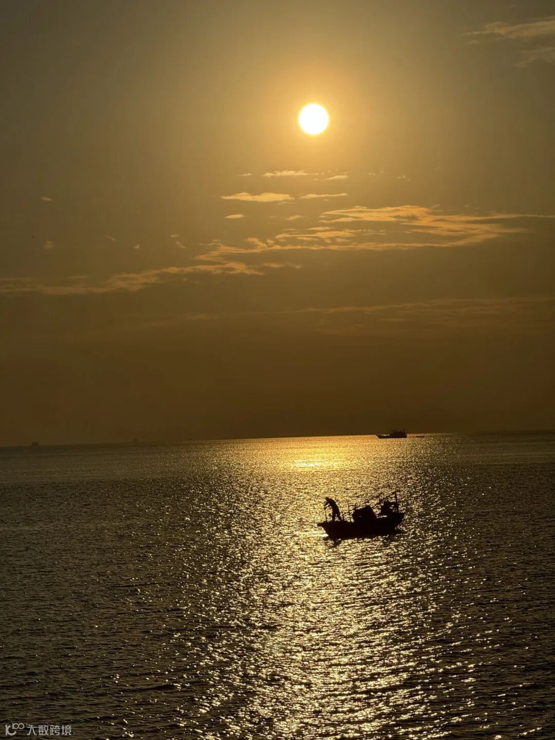 6点45分左右,太阳已悬于半空。海面拖下一袭瀑布般星星点点的金色光影。海风吹来的海水,轻轻拍打着岸边青石,发出轻柔而舒缓的声音。此时此刻,身边可以是朋友、是家人,也可以是共赴这个日出“片场”的陌生人。