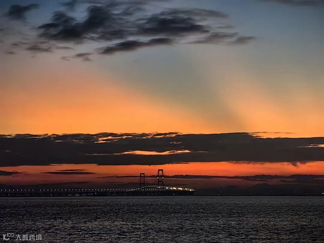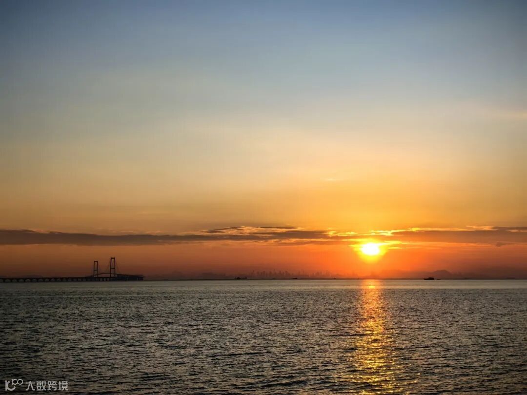 当城市的第一抹微光开始浮现,直至天色呈现橙红色的梦幻。旭日、深中通道、深圳前海城市天际线“三景同框”,海面倒映着云、天和大桥。这个时候拍下的照片,出片率必须是杠杠的。