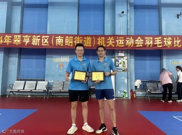 近日,能源公司陈华熙参加翠亨新区(南朗街道)举办的2024年“机关运动会”系列比赛羽毛球男子双打项目,喜获冠军。