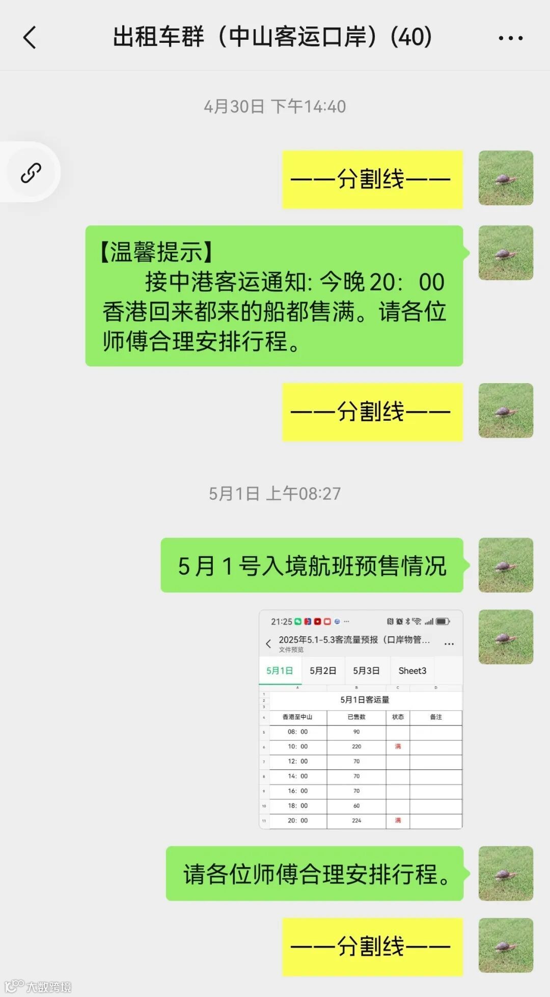 为应对假期客流高峰,保障旅客高效疏散,翠亨物业提前谋划、主动作为。节前,与航运公司建立专项沟通机制,实时掌握“五一”期间每日航班预售数据,并与出租车、网约车司机组建信息共享微信群,及时推送航班预订动态及交警交通管制通知。司机据此灵活调配运力,实现了运输资源与旅客需求的精准匹配。