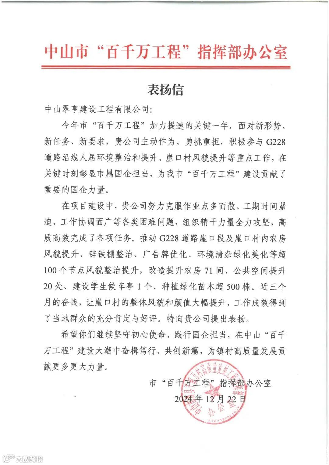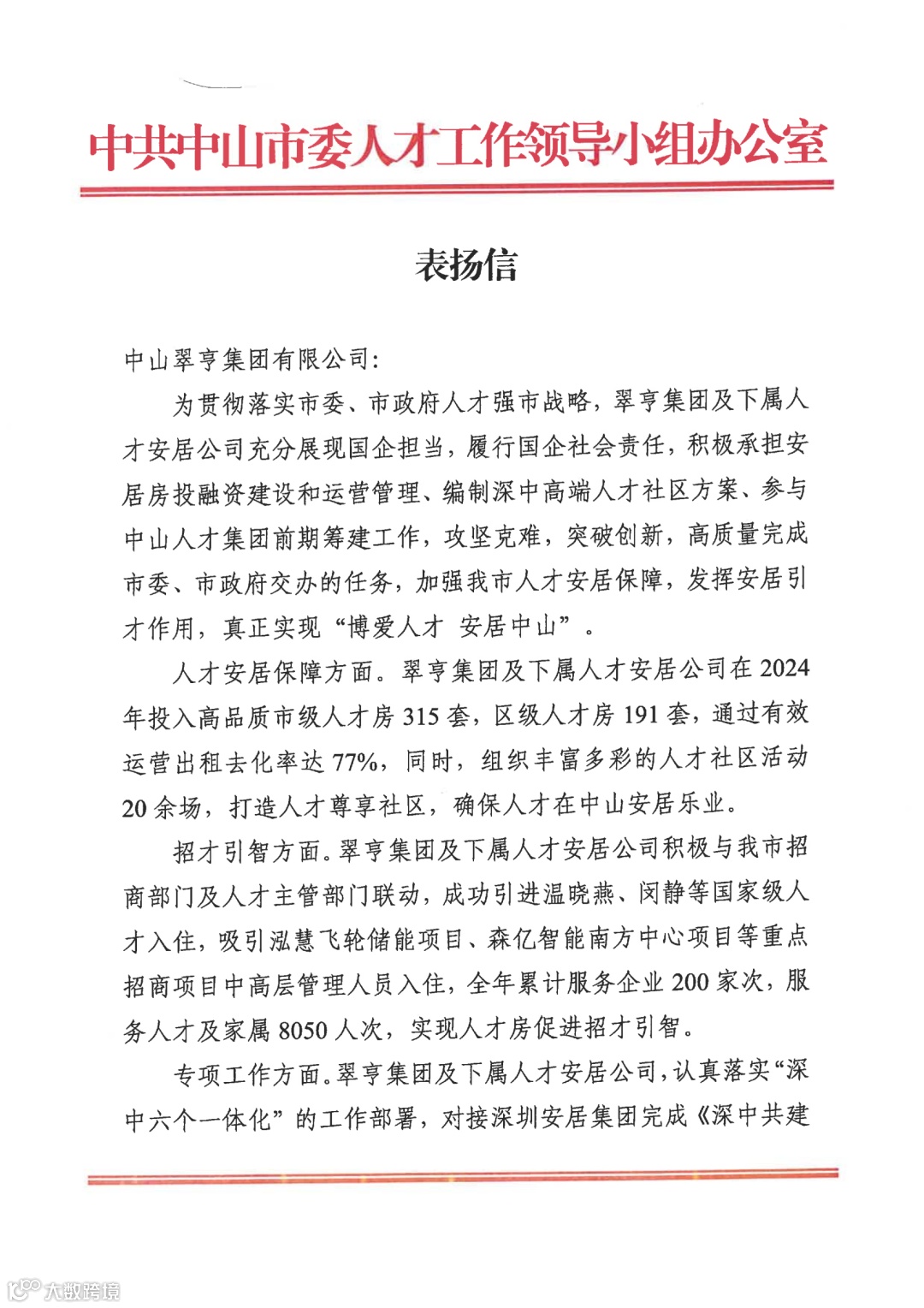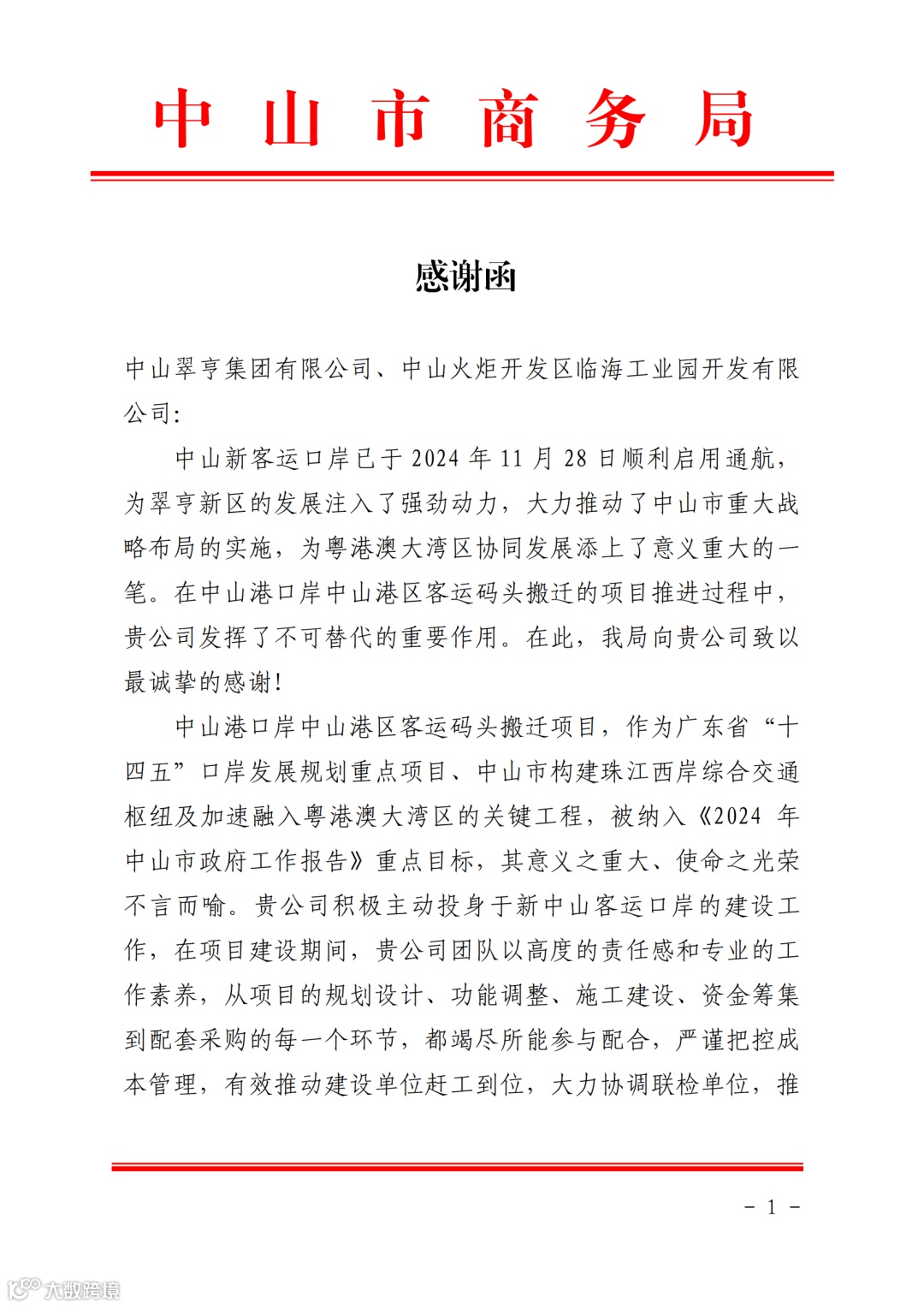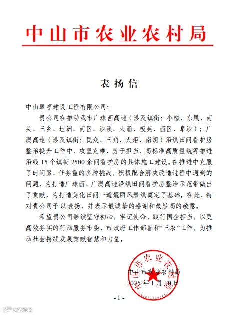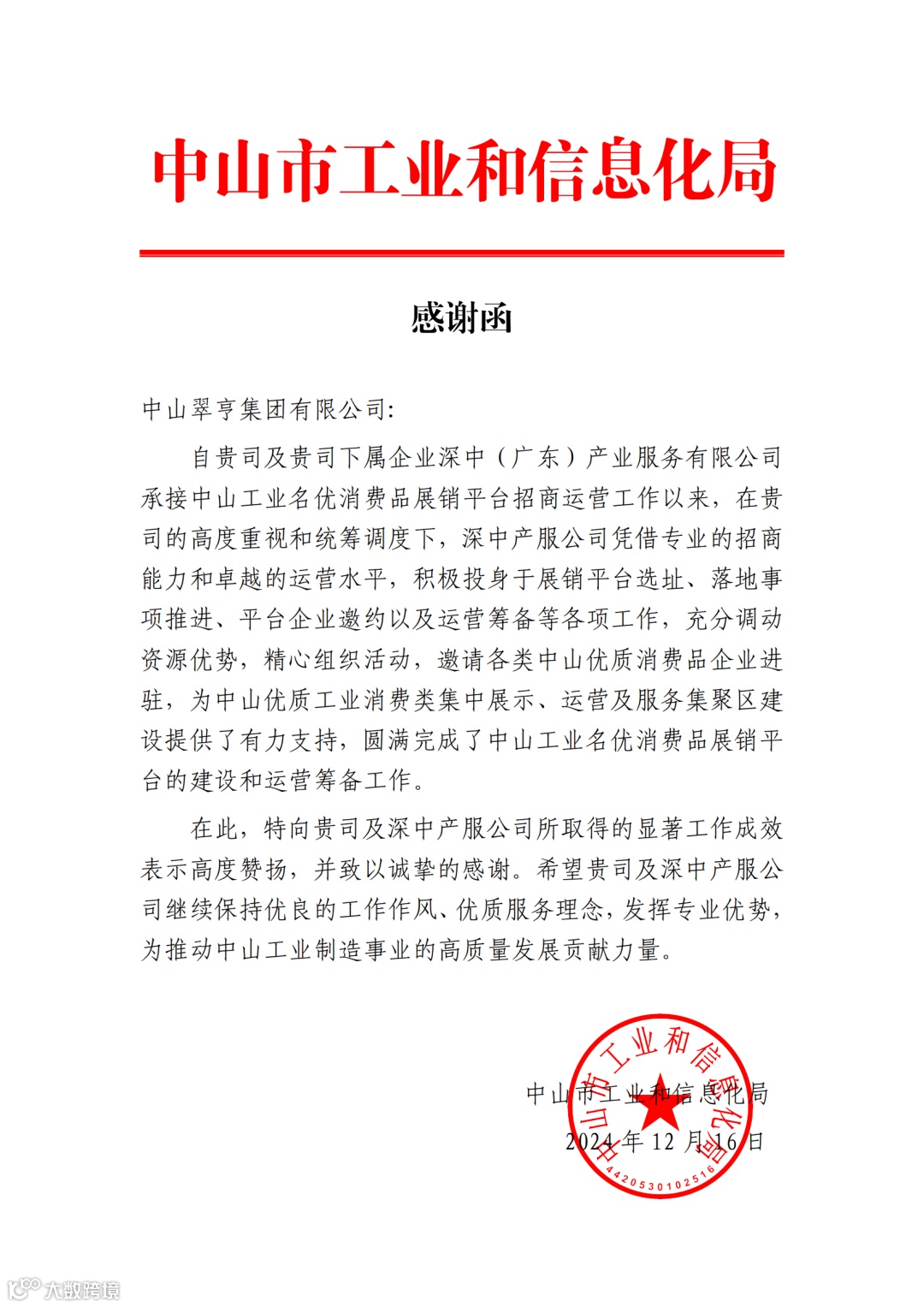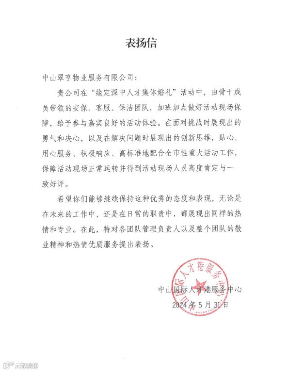 2024年,翠亨集团坚持“城市运营+产业发展”主责主业,招商引资、项目建设、运营拓展、“百千万工程”等工作得到广泛认可,收获一大批表扬信、感谢信点赞!
