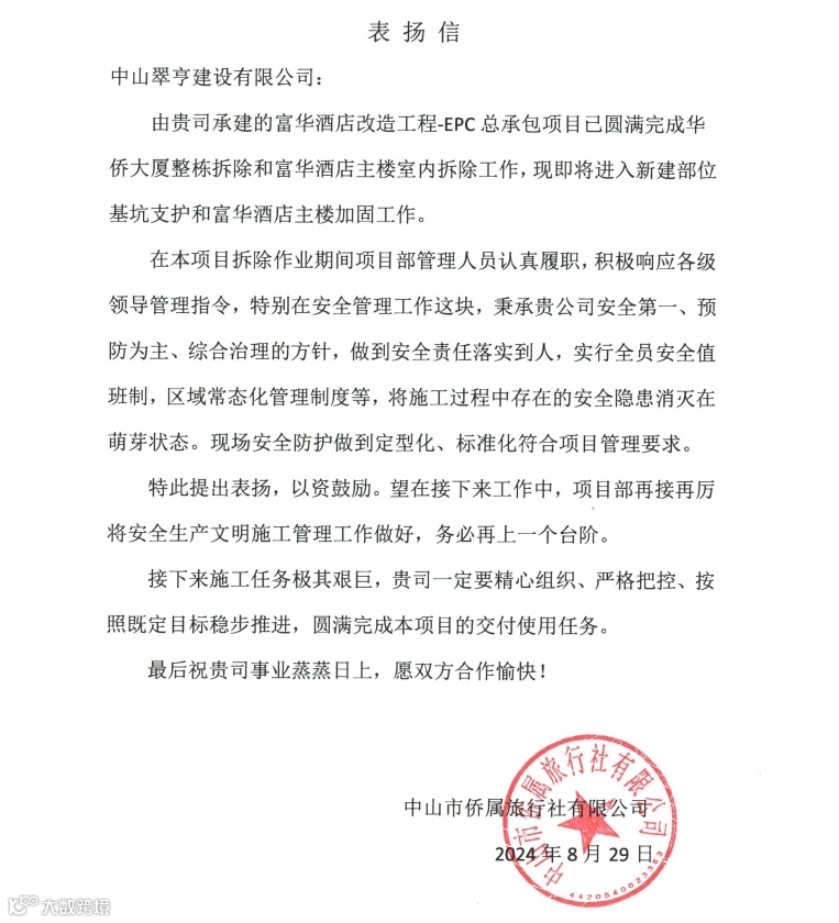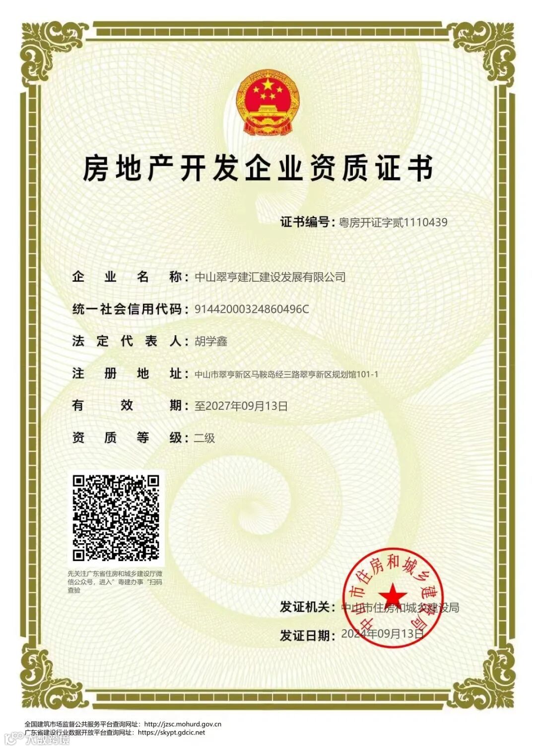 翠亨建汇建设公司于2024年9月13日成功申领房地产开发企业资质证书(二级),此举标志着公司在推进国有资产盘活、加速配建房销售工作方面迈出坚定的步伐。