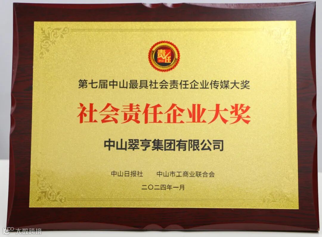 第七届中山最具社会责任企业传媒大奖评选,翠亨集团本部获“社会责任企业大奖”“关爱人才企业奖”。