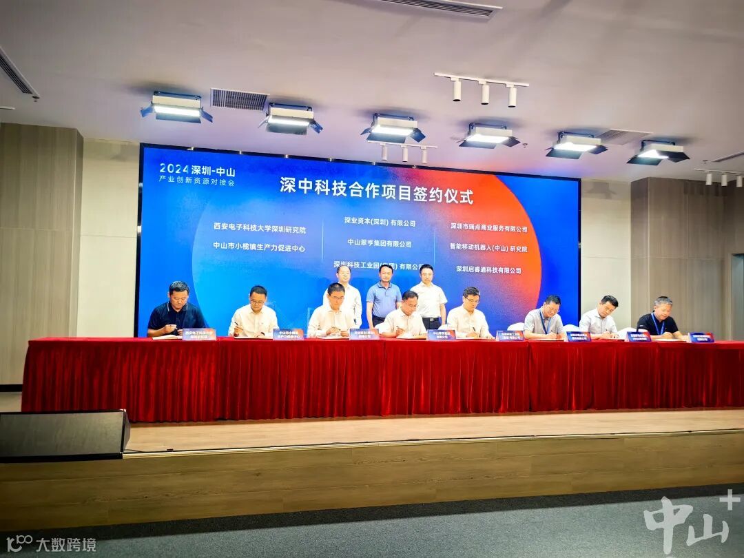 活动现场,来自深圳的23家科研院所、36家科技企业代表近100人携创新成果参加此次对接会,中山同步整理发布了近60项企业技术需求,并遴选了9个具有代表性的合作项目进行现场签约,如中山翠亨集团有限公司与深业资本(深圳)有限公司、深圳科技工业园(集团)有限公司共建深中发展基金等,涵盖科技金融、人工智能、生物医药、智能制造、机器人、产业服务等专业领域。