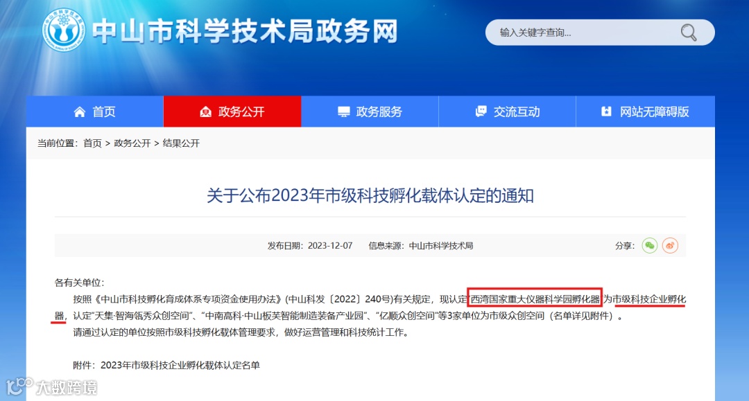 作为由国家科技评估中心、广东省科技厅与中山市政府强强联合打造的孵化器,西湾国家重大仪器科学园已于2023年12月6日荣获“市级”孵化器殊荣,实力与信誉并重。