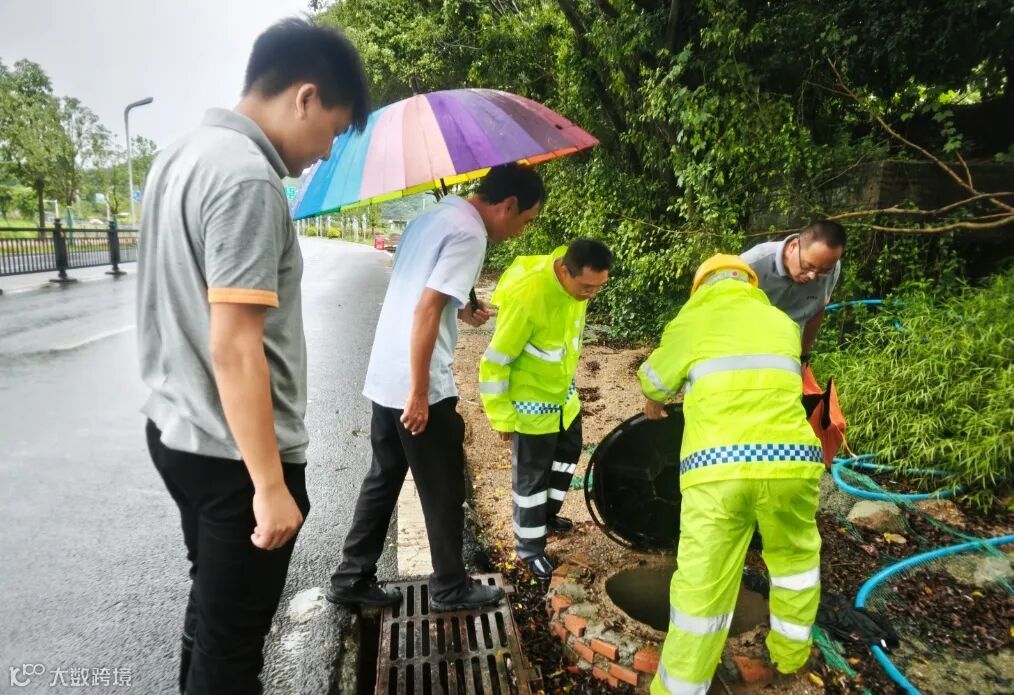 8月15日,城资公司组织调配近10台强排泵到南朗街道受突发暴雨影响的各积水点排水,巡逻组不断清淘淤堵雨水边井,以迅速缓解各主要路段积水情况。