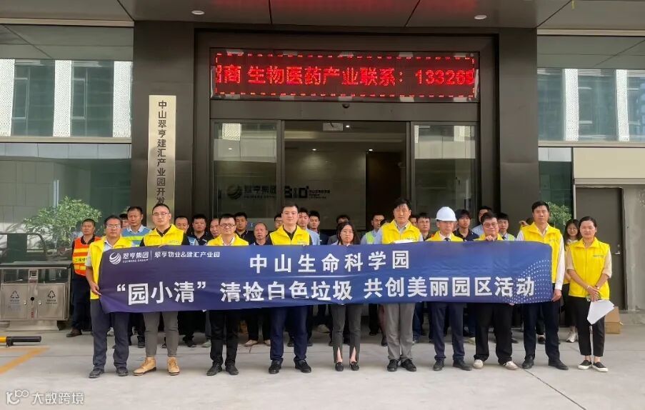 10月24日,翠亨建汇产业园公司与中山生命科学园物业团队开展了中山生命科学园“‘园小清’清捡白色垃圾 共创美丽园区”志愿服务活动。