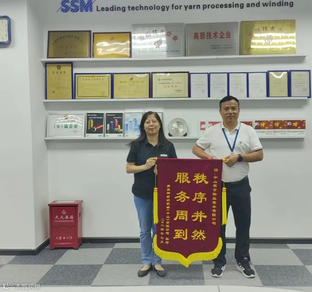 8月2日,临海工业园企业“丝丝姆纺织机械(中山)有限公司”向翠亨物业公司赠送锦旗,以表彰翠亨物业公司自5月进驻以来园区物业管理服务的显著提升。