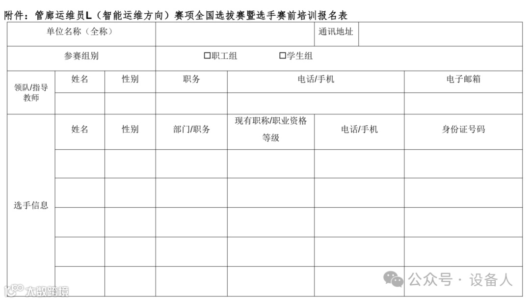为深入贯彻国家关于加强高技能人才队伍建设的战略部署:贯彻落实《人力资源和社会保障部关于组织开展2024年全国行业职业技能竞赛的通知》等文件精神,第二届全国设备管理与智能运维职业技能竞赛组委会定于10月26日至10月31日在广东省中山翠亨新区举办管廊运维员赛项全国选拔赛及赛前选手培训活动。具体通知如下: