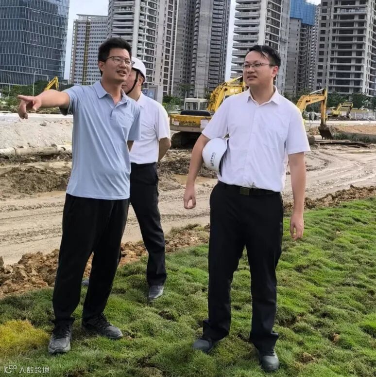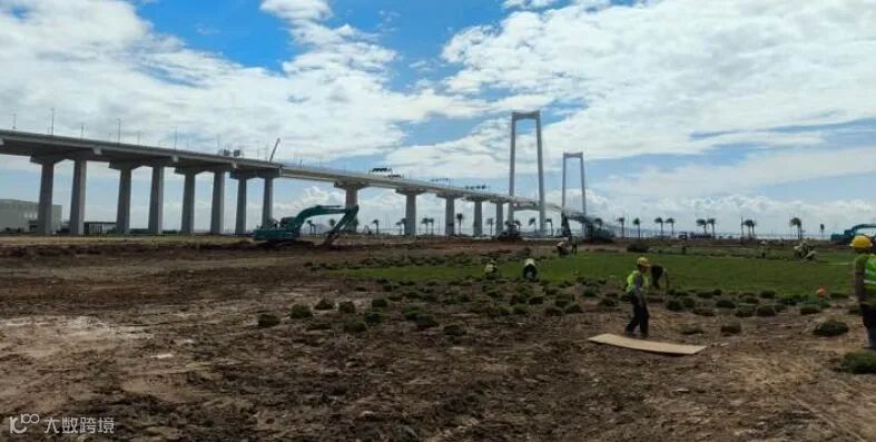 从6月20日开始,为迎接深中通道正式通车,推进深中通道沿线环境综合整治和绿化美化工作,园林公司抢抓晴好天气,全力以赴推进工程进度,加快对登陆点E-35地块进行平整、复绿,每天投入钩机8台,推土机2台,绿化工人100至150人,确保工程如期完成。
