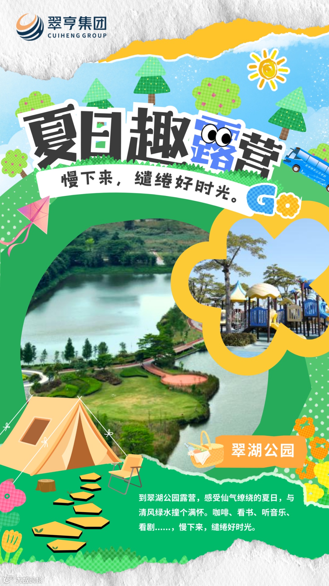 15点,到翠湖公园露营,感受仙气缭绕的夏日,与清风绿水撞个满怀。咖啡、看书、听音乐、看剧......,慢下来,缱绻好时光。