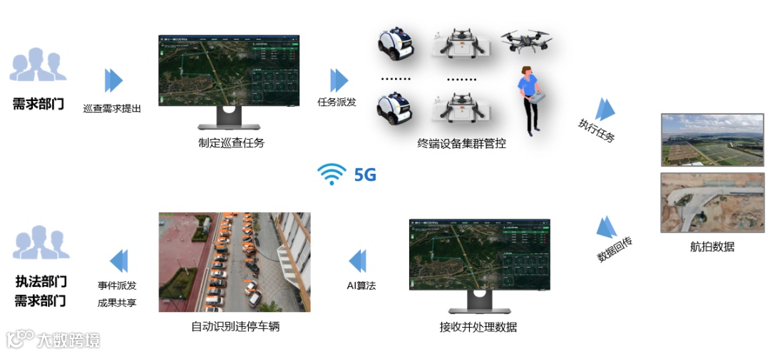 本项目按照“平台统一、技术先进、设计超前”的思路进行统筹规划、设计与开发。构建无人机运营管理平台“巡查、管理、运营”三大核心能力,实现信息采集/处理自动化、数据分析主动化、事件识别智能化、运营管理一体化,将运维工具、智慧应用、基础平台及物联网设备等进行全面、统一的管理,解决了以往运维工具分散导致的数据无法打通的问题,对运维管理体系提升起到重要作用;实现三级协同联动,即互相协同,及时更新,及时上报的有效流转与处理能力。构建“防控、执法、共治”三级联动圈,纵向打通区、镇街、村社、网格之间的管理体系,横向建立部门与部门之间、部门与镇街之间的有机联系,形成线上线下同频共振、纵横交错立体可控的基层治理模式,服务于社会治安、城市监管、环境保护、防灾减灾。构建数字城市底座,实现事件信息共享与协调联动。