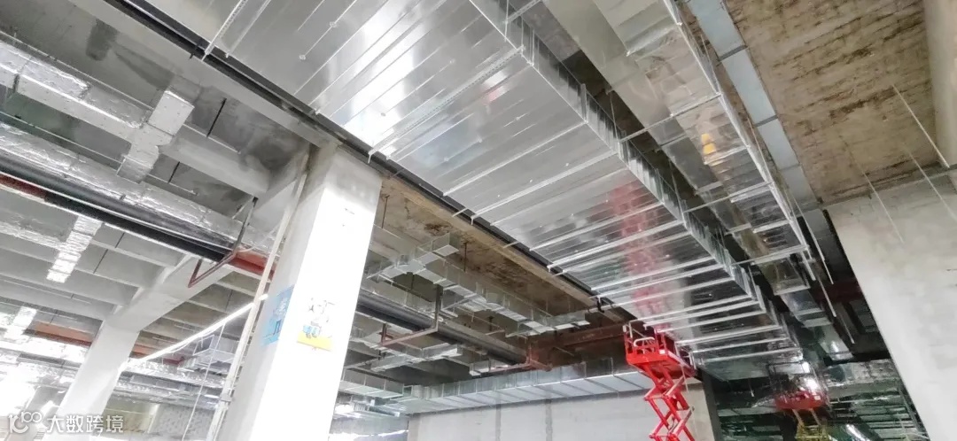 “这个是精装的龙骨,目前已经完成了差不多90%,它面层是铝扣板,在工厂加工好,拉到现场整体往上面安装,它的施工速度可能会比钢化石材这种快20%-30%。”