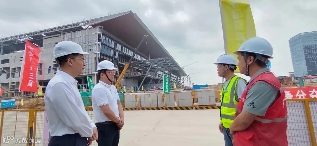 联检大楼进入内部装修阶段,呈现出一派热火朝天的施工景象。