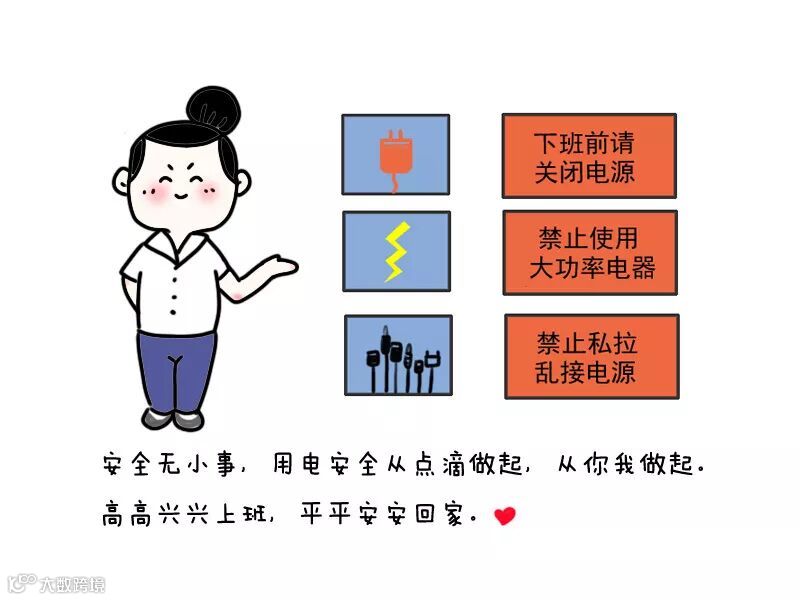 ◉ 定期检查电器设备及电路,确保其完好无损,不乱接电线,不超负荷使用电器。