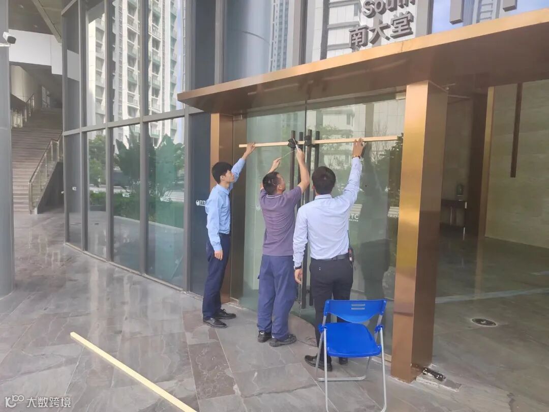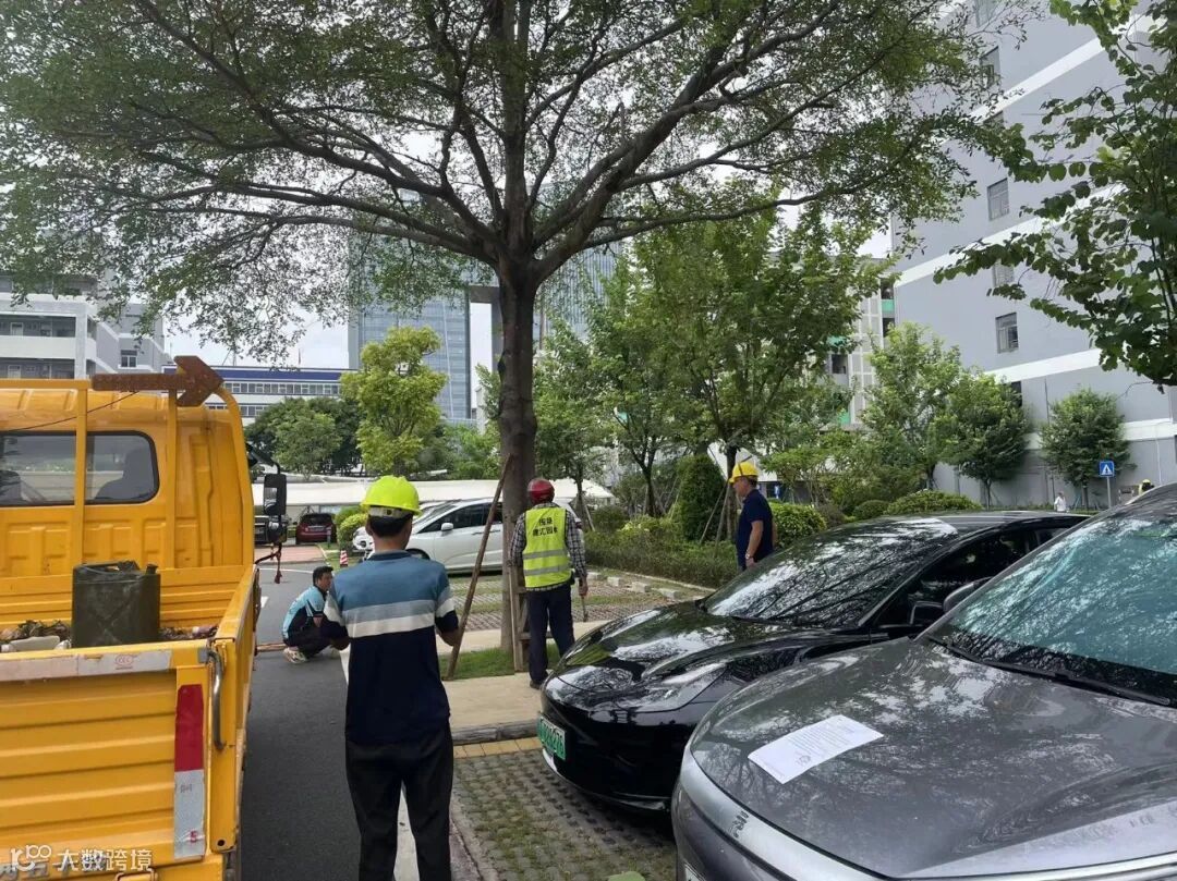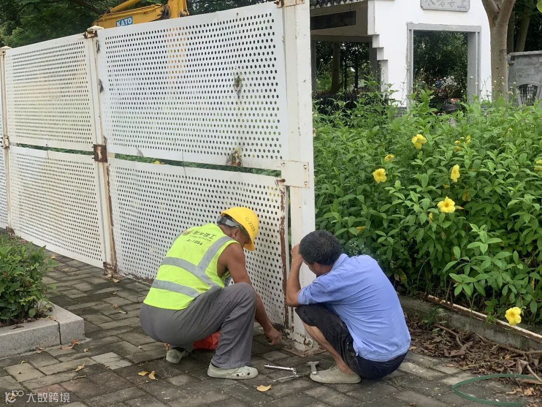 西湾信息公司全面检查户外施工的项目,现场宣贯防风防汛通知要求,督促施工单位加固正在施工的半成品,确保杜绝因大风吹起损物伤人的风险。