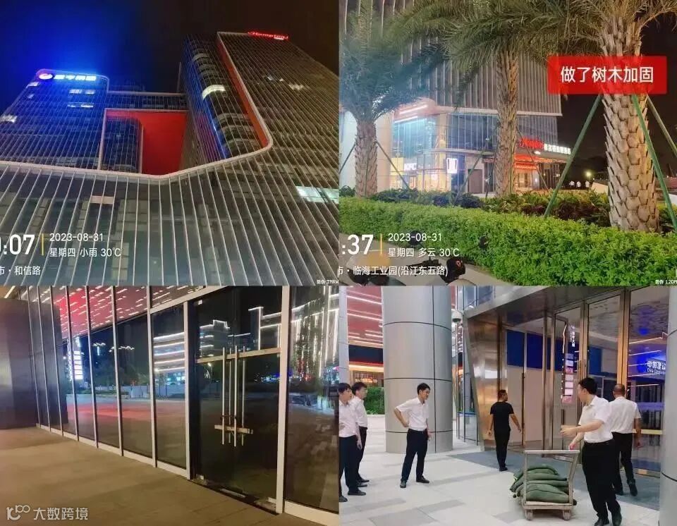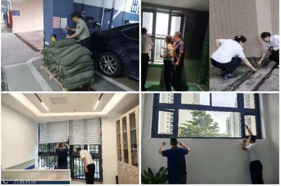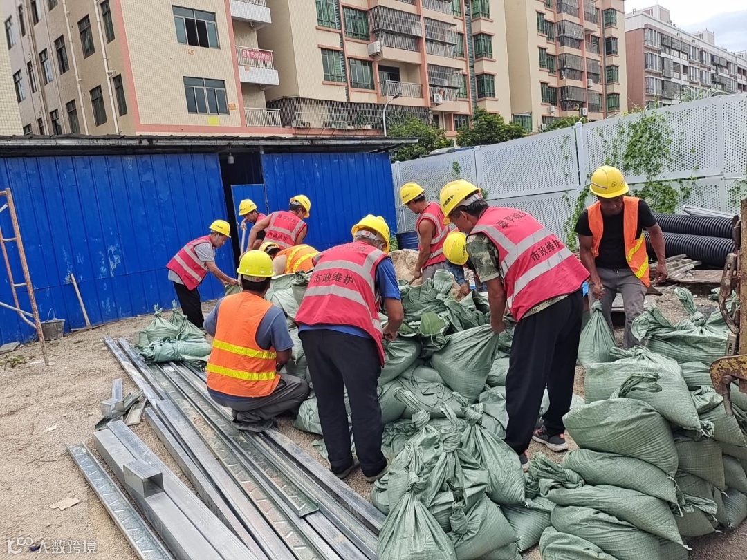 临海公司立即启动三防值班值守,主要领导带队第一时间前往辖区物业进行全覆盖检查,组装防风撑杆、装填沙袋,提前对丝丝姆应急安置点进行现场清洁,全面排查排水沟、排水泵、外围下水道排水口等。