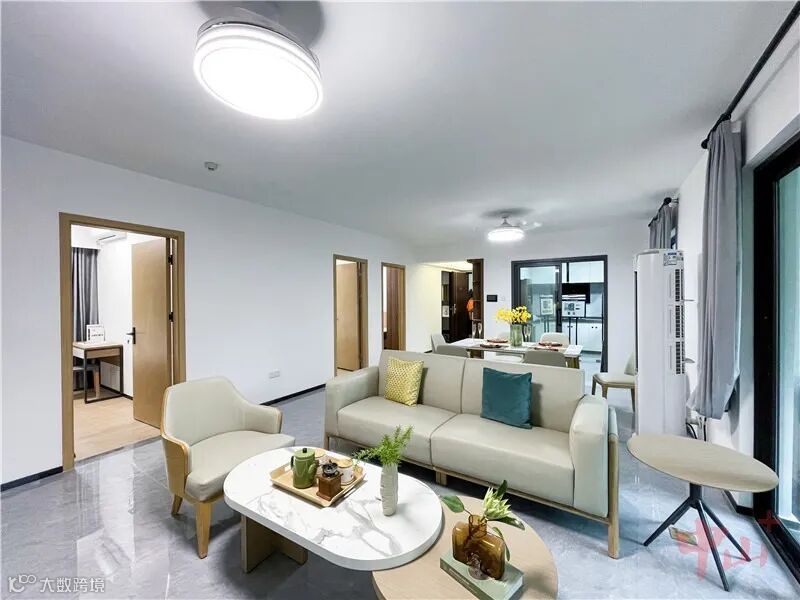 记者走进位于12栋的一间108平方米的样板间看到,人才房客厅宽敞明亮,公寓内都配备独立的厨房、卫生间和阳台洗衣房,房间明亮透气,地面铺着浅灰色地砖。