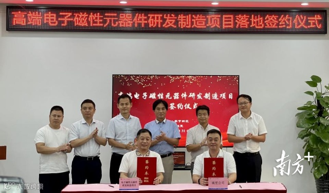 本次签约仪式上,园区建设运营方中山翠亨城市更新有限公司与高端电子磁性元器件研发制造基地项目成功签约。项目方将一次性购买翠城1号项目6.1万平方米定制厂房。