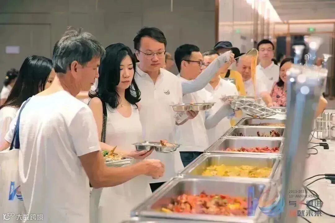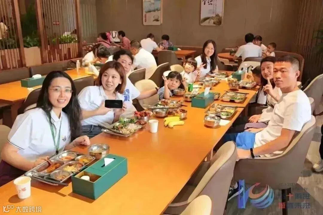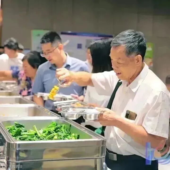 最后,家属们在自己家人的陪同下,陆续前往翠亨大厦A栋5楼饭堂用餐。