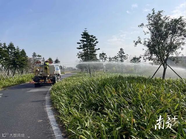 翠亨新区东片区(马鞍岛)主干道绿化带得到优化提升。