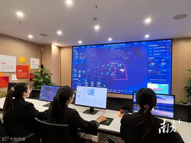 除了强化硬件和队伍,翠亨城资还组建了数字运营中心。这是“物业城市”的大脑,管理队伍的每一位成员都被纳入到该中心的数字系统中。通过电子工牌,系统可实时监测工作人员的在岗状态和作业轨迹等数据。此外,城市巡查员均配置执法记录仪。通过执法记录仪,数字运营中心可进行远程查岗,规范巡查人员服务行为,并获取巡查服务画面、语音等大数据。
