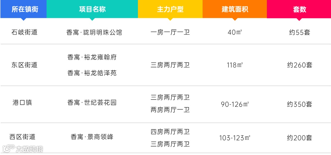 根据《市级人才房筹建管理实施方案》要求,从市财政局提供的房源中选取地理位置优越、交通便利共计800余套精品楼盘作为首批市级人才房源,分布于中山东区街道、石岐街道、西区街道及港口镇共五个项目。