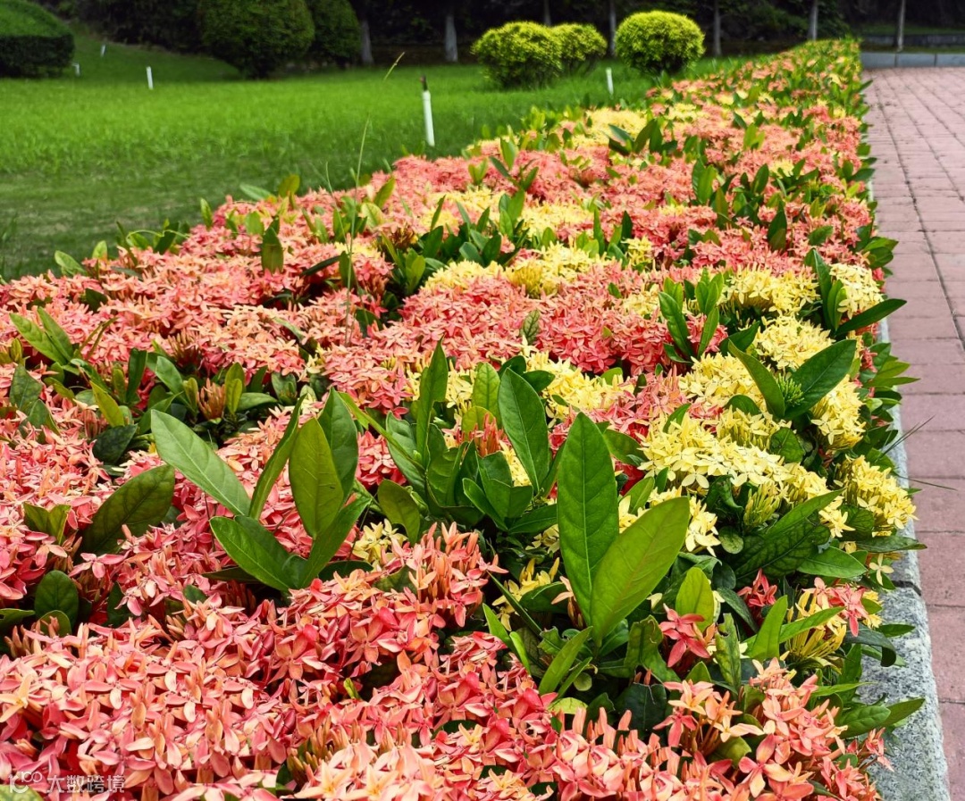 宫粉龙船花,从前存在植株老化严重,通过科学化管养,定制4个月的专项养护方案,也在这个夏天簇拥盛放。
