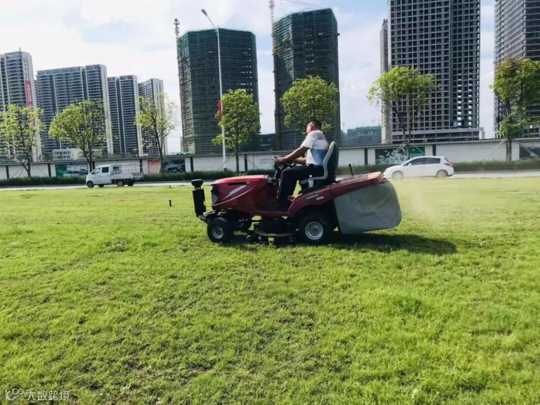 采用专业机械修剪草坪