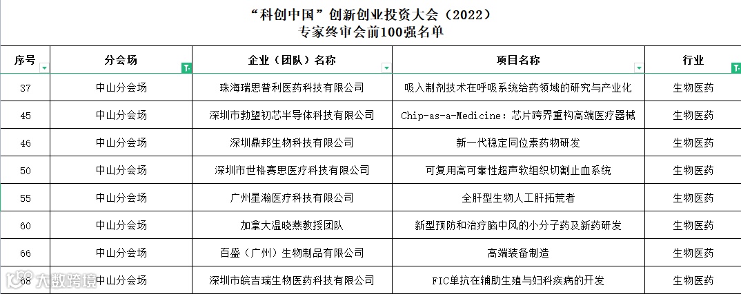 https://www.sziiep.com/gm/pc/notice/detail?id=15“科创中国”创新创业投资大会全国TOP100名单公示