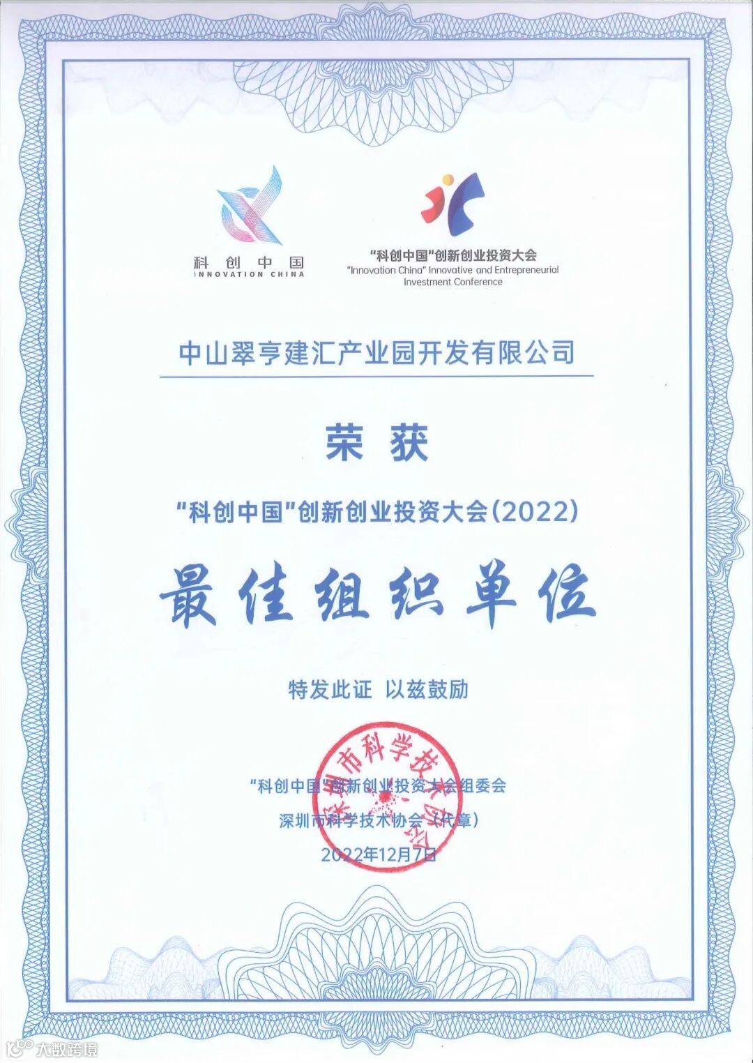 近日,“科创中国”创新创业投资大会(2022)专家终审会前100强名单公布,中山分会场推荐的10强生物医药项目中有8家入选,建汇产业园公司获评最佳组织单位。