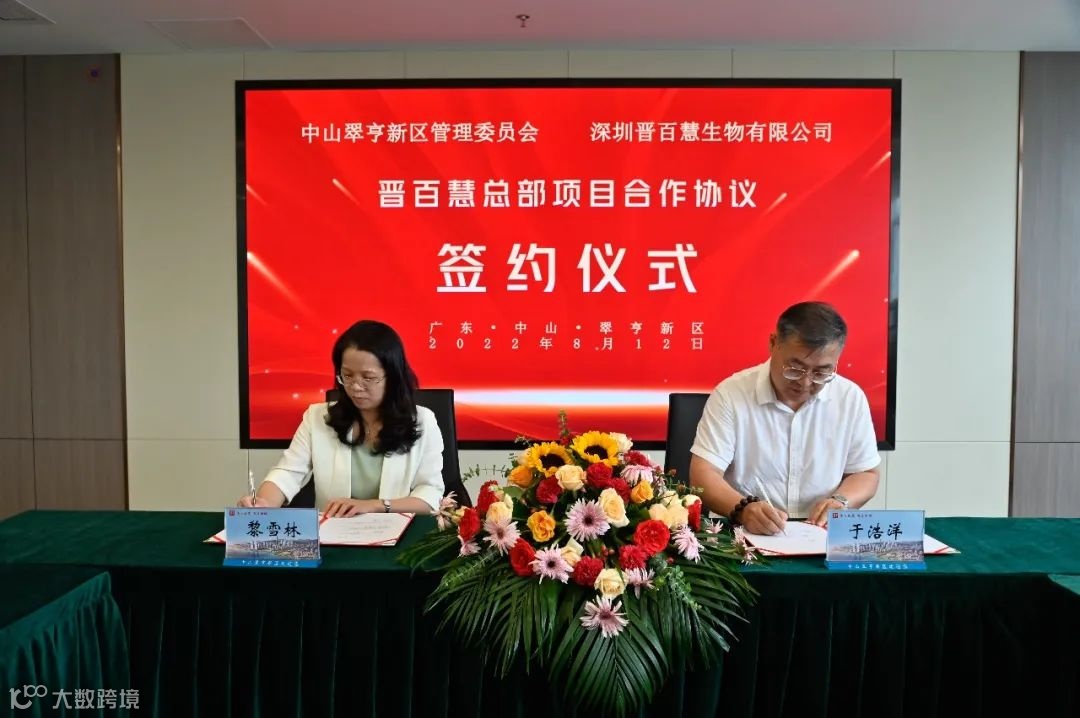 8月12日下午,翠亨新区与晋百慧生物总部项目合作签约仪式在西湾国家重大仪器科学园11楼孵化器会议室举行。市政协副主席徐小莉、翠亨新区党工委书记梁克、翠亨新区管委会副主任黎雪林、晋百慧生物创始人兼CEO于浩洋博士、董事长苏静、翠亨集团总经理李治声、西湾投控公司总经理伍军参加并见证了签约仪式。