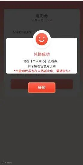 (2)年度积分5000分以上用户可获餐饮券一张或电影券一张;