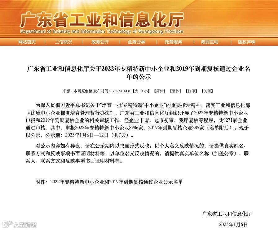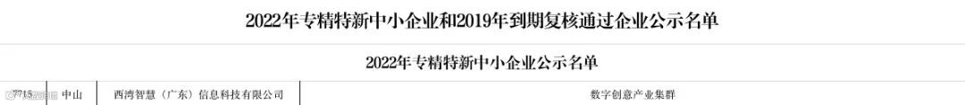 近日,广东省工业和信息化厅公示了2022年专精特新中小企业和2019年到期复核通过企业名单,西湾智慧公司成功入选2022年度广东省“专精特新”中小企业。
