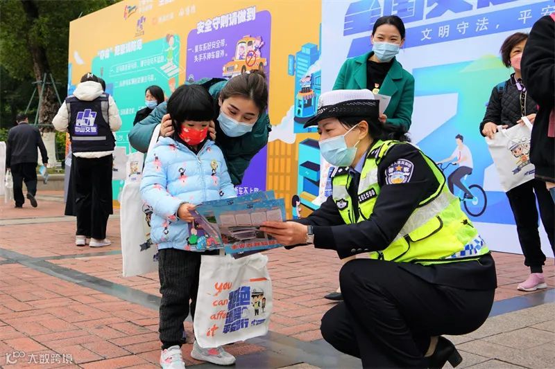 交警向市民宣传交通安全知识。王伟 摄