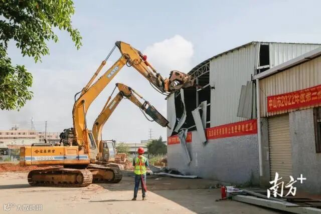 2022年1月4日,在新年的第一个工作日。中山市高规格召开村镇工业集聚区升级改造工作动员大会。当天下午,翠亨新区在南朗街道南朗村废品收购站项目迎来新一轮集中清拆工作近20栋废旧厂房被集中清拆,拆除面积近70亩。