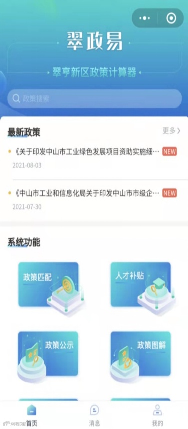 “翠政易”——翠亨新区政策计算器小程序:根据新区管委会本着“店小二”精神服务好企业的需求,西湾公司技术团队经过一段时间的研发测试,于2021年3月应需推出“翠政易”——翠亨新区政策计算器小程序V1.0:通过运用大数据算法+AI语义分析,智能化设计让政策主动找企业,全方位覆盖了企业从日常政策查阅到政策申报准备的全过程,企业只要输入基本信息,即可查询相关政策和指标,解决政策解读难题,进而帮助企业更有针对性地掌握政策,准备申报材料,打通政策执行的“最后一公里”,解决了企业和人才在申报政策过程中,存在的政策种类繁多、专业性较强、信息不对称;企业管理人员无过多精力进行政策筛选;新出台的政策具有时效性,易错过申报时机,难以享受到政策红利等难题。实现了“服务全覆盖、政策零距离”。10月11日晚,中央电视台《新闻联播》推出的重点报道——《广东中山:打造大湾区高品质宜商城市》,对“翠政易”助力新区打造高品质宜商城市的作用予以肯定。