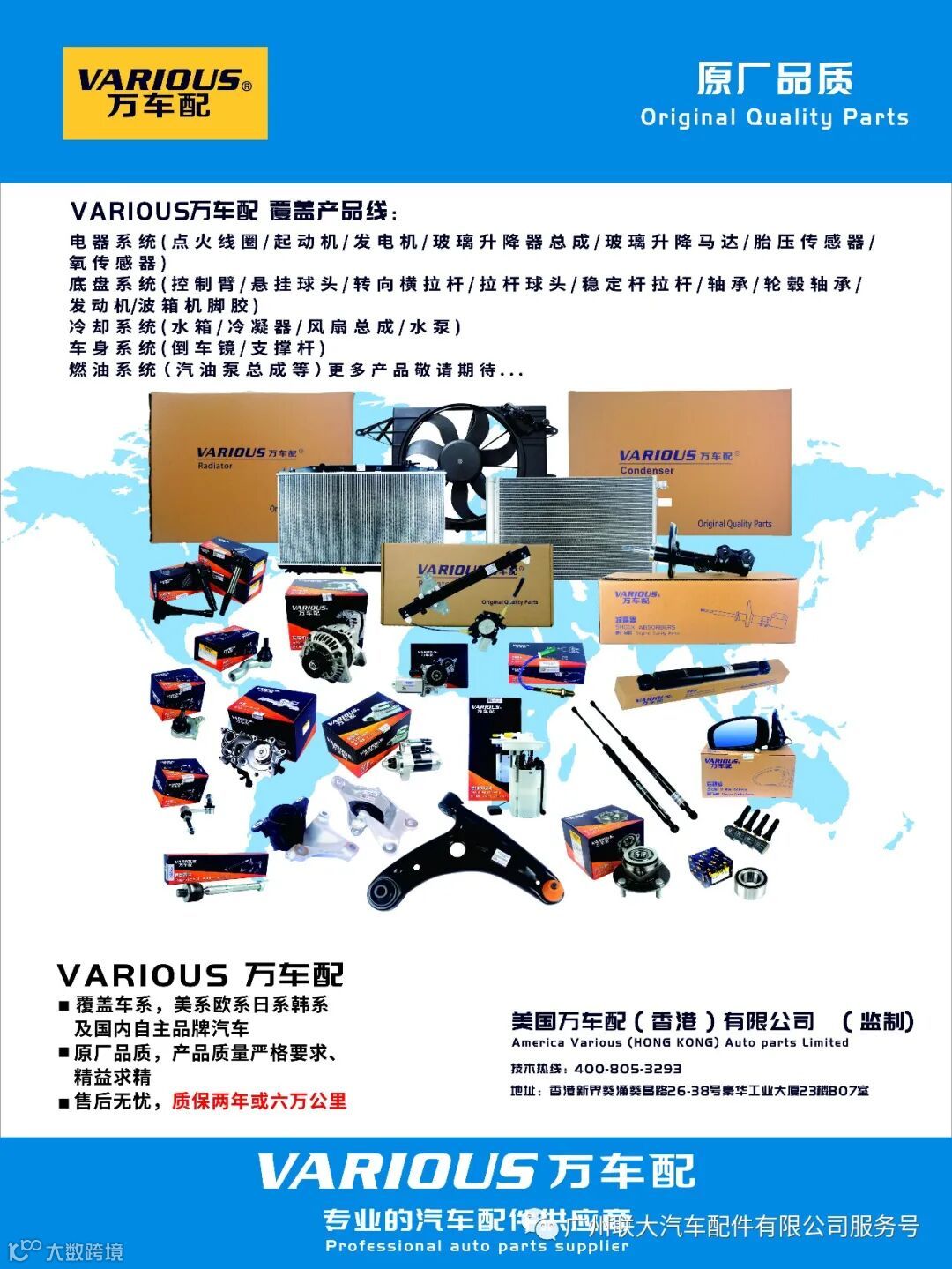 由广州联大汽车配件有限公司携手美国万车配(香港)有限公司携手推出的万车配(VARIOUS)品牌