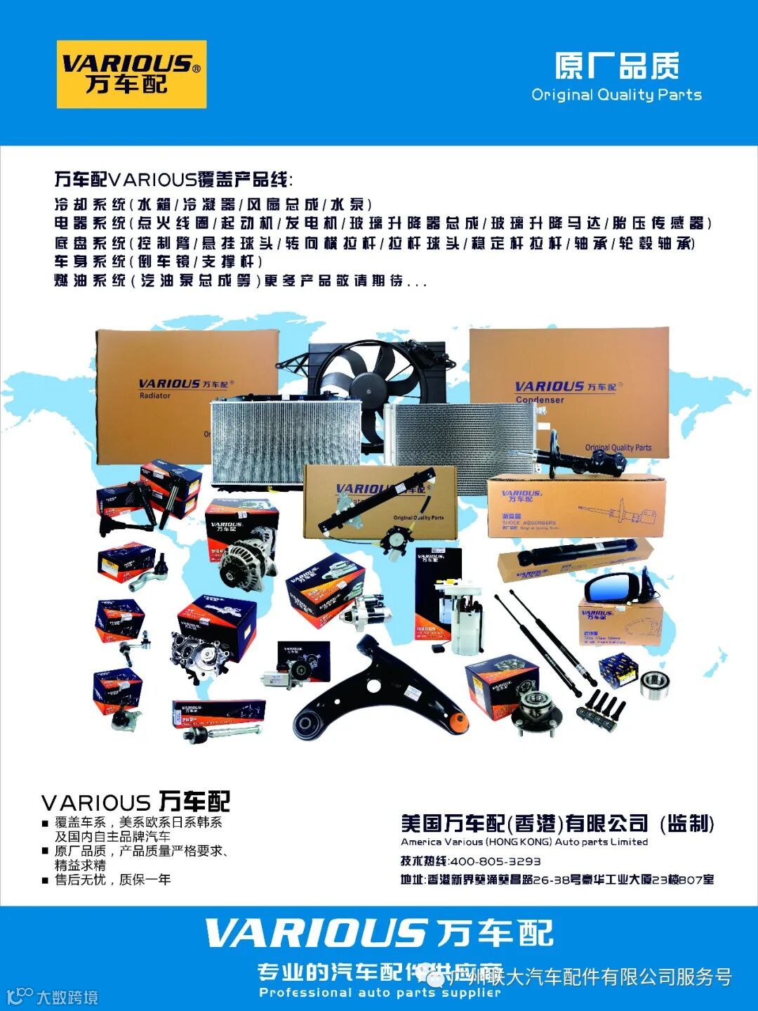 由广州联大汽车配件有限公司携手美国万车配(香港)有限公司携手推出的万车配(VARIOUS)品牌