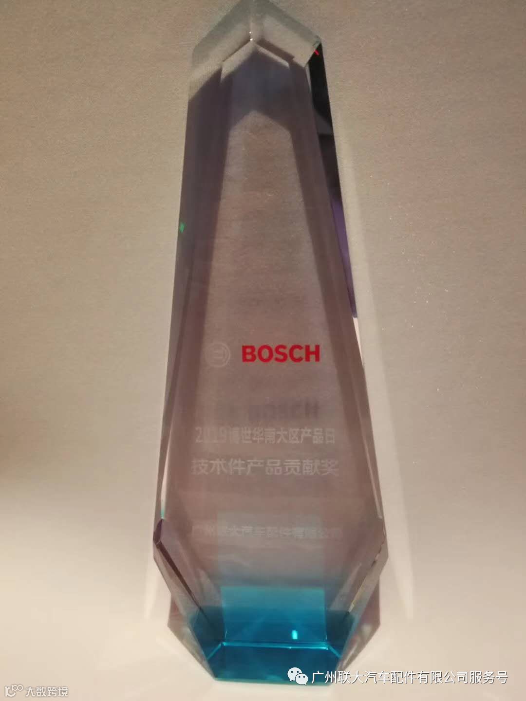 在博世的产品日上我司广州联大汽车配件有限公司也获得了“2019博世华南大区产品日 - 技术件产品贡献奖”