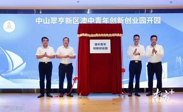 在现场,中山市委常委、组织部部长梁子财,中山市副市长周作德,中山市委副秘书长、翠亨新区党工委书记梁克,中山市人社局局长黄学礼,共同为“澳中青年创新创业园”揭牌。