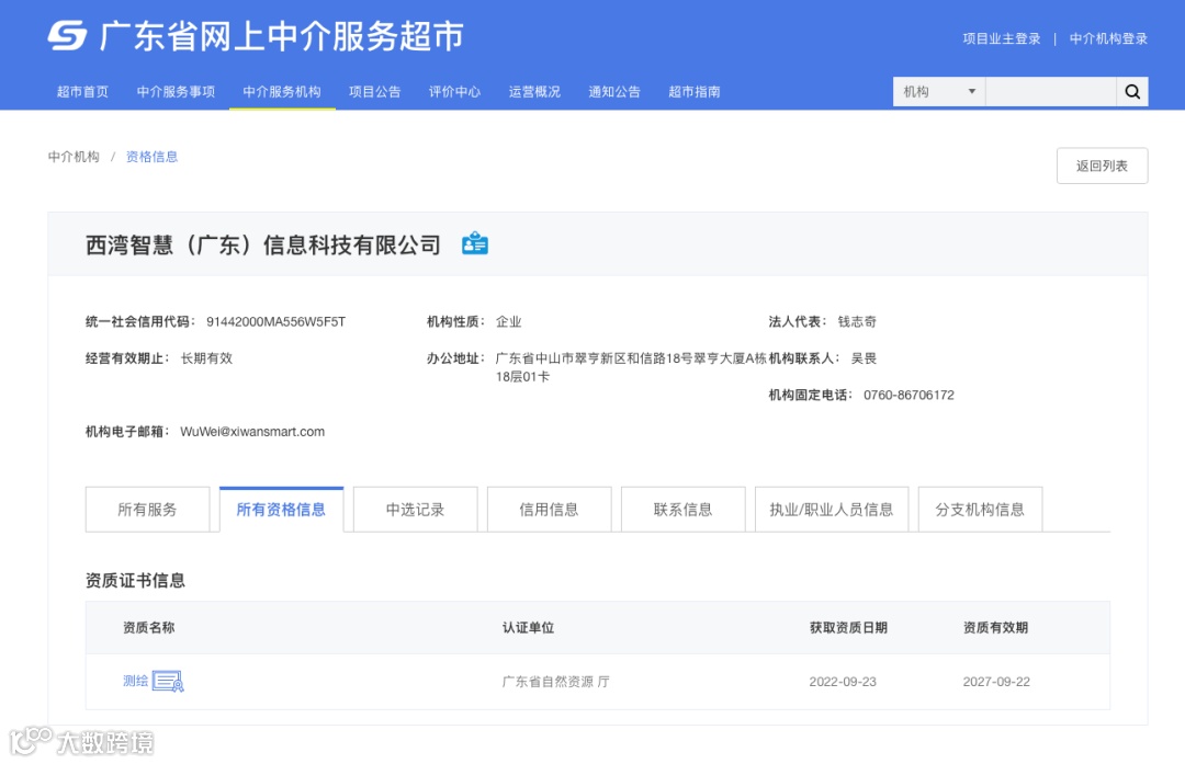 此外,西湾智慧公司已成功进驻“广东省网上中介服务超市”。公司将依托该平台,进一步为政府、企业等单位提供测绘服务。