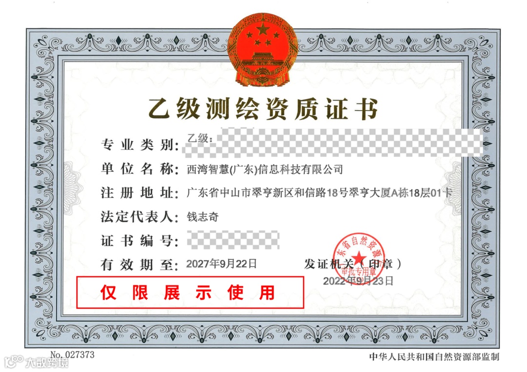 近日,西湾智慧公司顺利获得由广东省自然资源厅颁发的《乙级测绘资质证书》,专业类别包括“摄影测量与遥感、工程测量、海洋测绘、界线与不动产测绘、地理信息系统工程”。此次乙级测绘资质的获颁,标志着公司业务水平和综合竞争力迈上了新台阶,为企业的规模提速、品质提升提供了新动力。