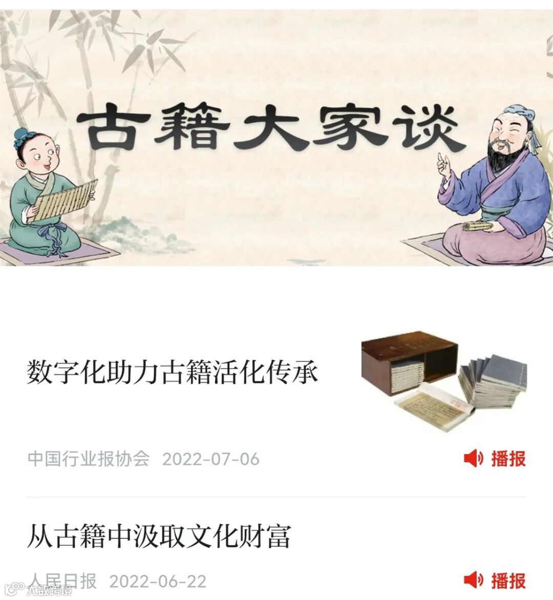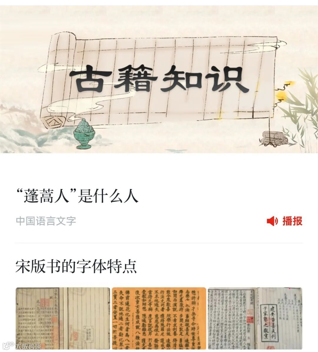 古籍知识。汇集、展示与古籍相关的文化类节目或慕课课程,并将通过图文、音频、视频、动漫等形式向大众普及古籍常识及基础知识。